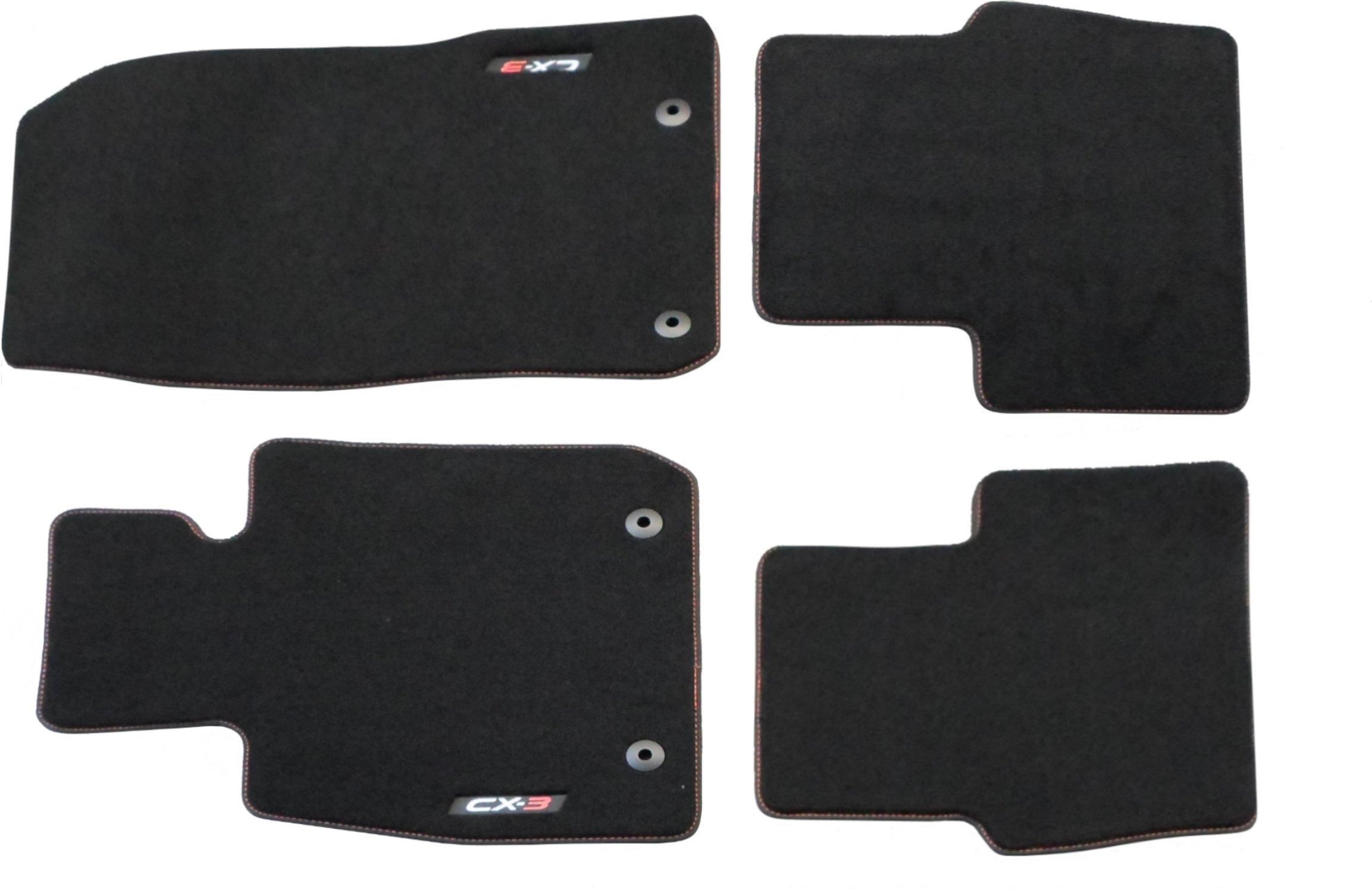 Komplet (4 sztuki) oryginalnych fabrycznie nowych grubych dywaników welurowych Luxury z biało-czerwonym wykończeniem (DD2H-V0-320) z kolekcji oryginalnych akcesoriów MAZDA dedykowanych do samochodów: MAZDA CX-3 - model DK - roczniki 2015-2021 Komplet - 4 sztuki Kolor - Czarny Materiał - Welur …