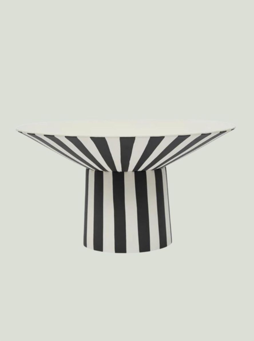 Patera Toppu z odrobiną koloru to ręcznie malowany, rzeźbiarski element, który będzie ozdobą każdego stołu. Żywe paski dodadzą każdej przestrzeni zabawnego akcentu. Idealny do przechowywania drobiazgów lub serwowania przekąsek, a także jako unikatowy element artystyczny. Wymiary: Dł. 30 x Szer. 30 x Wys. 17 Materiał: 100% kamionka