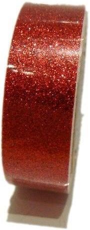 Taśma dekoracyjna brokatowa w czerwonym kolorze. Przydatna przy tworzeniu kartek, zaproszeń, pakowaniu prezentów, scrapbookingu, dekoracji wnętrz. Wymiary: 1 cm x 200 cm