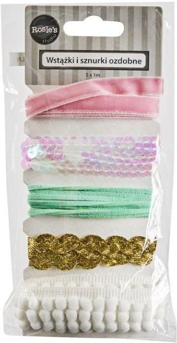 - wstążki do dekoracji - wzór: pastelowe - opakowanie zawiera 5 różnych wstążek - każda wstążka o długości 5 m