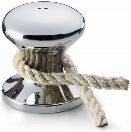 Solniczka Hamburger Philippi Podstawowe informacje Producent: Philippi Kod produktu: P273037 Kolor: srebrny Materiał: nikiel Wymiary: 4,3 cm (śr.) Pojemność: Marka Philippi znana jest z oryginalnych projektów przedmiotów codziennego użytku. Tym razem niezwykłą formę zyskała… solniczka. Jej forma, zaprojektowana przez Andreasa Ostwalda, zainspirowana została kształtem polera cumowniczego, a nazwa pochodzi od miasta Hamburg, gdzie cumujące statki widuje się codziennie. Solniczka wykonana jest z polerowanego niklu i jako ozdobę dołączoną ma wąską linę. Całość prezentuje się bardzo elegancko i będzie elementem wystroju stołu, który rzuca się w oczy.