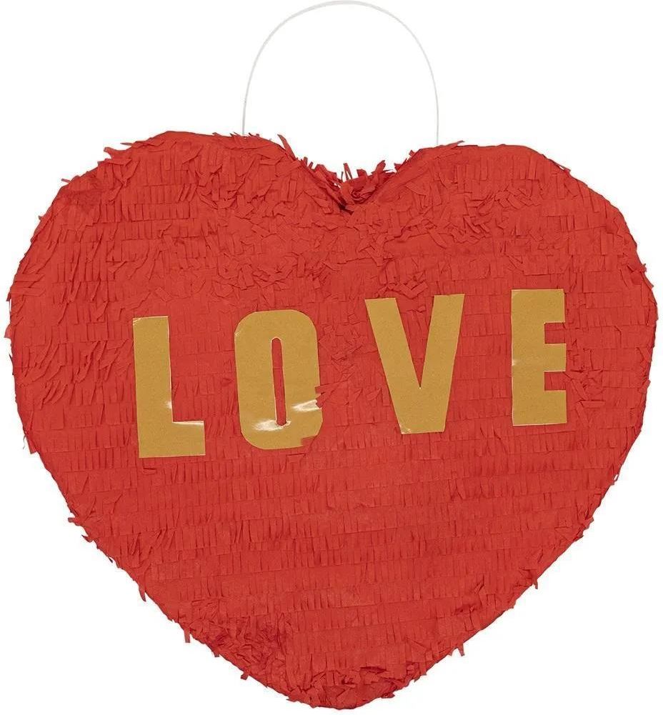 Pragniesz, by impreza walentynkowa nie przebiegła nudno i banalnie? Warto więc zadbać o odpowiednie atrakcje. Taką z pewnością jest ta oto czerwona piniata w kształcie serca ze złotym napisem LOVE. Usiądź na kanapie i zobacz, jak twoja druga połówka z opaską na oczach nieudolnie próbuje rozbić piniatę. Może zostać ona zapełniona słodyczami bądź innymi upominkami np. takimi, które moglibyście później razem wykorzystać :)Płaska piniata po zdjęciu zabezpieczeń rozkłada się i jest gotowa do rozbicia. Nie zapomnij jednak przed zabawą zapełnić ją słodkościami :)Piniata posiada mały otwór, przez który wsypuje się słodycze, mini zabawki, przedmioty, które dzieci potem mogą ze sobą zabrać. Gifty do wypełniania piniaty również znajdują się w naszej ofercie. Sprzedawane przez nas piniaty są puste - BEZ WYPEŁNIENIA. Amscan,czerwony,doklejka - TOPY dekoracje na walentynki,składany,Walentynki