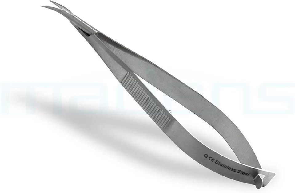 Zagięte nożyczki mikrochirurgiczne Castroviejo z niezawodnym mechanizmem sprężynowym. Posiadają smukłe, zakrzywione końcówki tnące. Delikatnie zmatowiona stal zapobiega powstawaniu refleksów świetlnych. Doskonałe do zabiegów z zakresu mikrochirurgii. Wykonane z wysokiej jakości stali nierdzewnej, mogą być wielokrotnie sterylizowane.