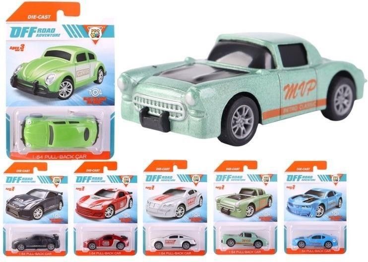 Różne wzory, produkt wysyłany losowo, cena za 1 sztukę. Ciesz się niezapomnianymi wyścigami i emocjonującą zabawą dzięki kolekcji samochodów metalowych z napędem pull-back! Te wyjątkowe pojazdy wykonane są z wysokiej jakości metalu, co gwarantuje ich wytrzymałość i długotrwałą zabawę. Dzięki napędowi pull-back, samochody po naciągnięciu w tył i puszczeniu mkną do przodu, przyciągając uwagę dzieci i sprawiając, że zabawa staje się dynamiczna i pełna emocji. Każdy model to dokładnie odwzorowany pojazd inspirowany ulicznymi samochodami wyścigowymi, retro klasykami oraz sportowymi muscle carami, co pozwala na stworzenie różnorodnej kolekcji. Idealny wybór dla małych pasjonatów motoryzacji, którzy uwielbiają wyścigi i kolekcjonowanie aut. Materiał: Metal (główna część nadwozia) z plastikowymi elementami dodatkowymi Typ napędu: Pull-back (napęd naciągowy) Skala: 1:64 Wymiary pojedynczego modelu: ok. 7 cm długości Rekomendowany wiek: 3+ Opakowanie: Każdy model jest zapakowany na osobnym blistrze, co ułatwia prezentację i przechowywanie Dostępne modele: Różnorodne samochody wyścigowe, klasyki oraz pojazdy sportowe Kolory i wzory: Auta dostępne są w różnych kolorach i wzorach, które przyciągają uwagę i zachęcają do zabawy Funkcje specjalne: Samochody posiadają realistyczne detale, które oddają wygląd prawdziwych pojazdów Wymiary: 155x105 mm Grupa wiekowa: 3+ Opakowanie: blister