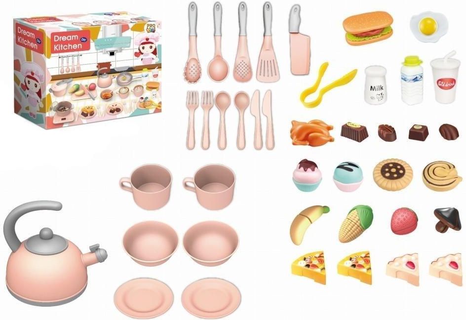 Ten bogaty zestaw akcesoriów kuchennych to idealna propozycja dla małych kucharzy! W skład kompletu wchodzą sztućce, naczynia, filiżanki, czajnik oraz realistyczne elementy jedzenia, takie jak pizza, czekoladki, jajko sadzone, hamburger czy napoje. Dzięki tej zabawce dziecko może wcielać się w rolę …