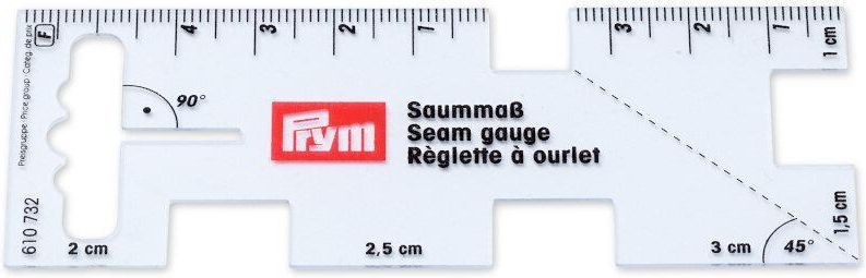Przezroczysta miarka do zapasów na szwy PRYM 610732 Elastyczna, przejrzysta, niewielka i dzięki temu poręczna. Miarka do zapasów na szwy, praktyczna pomoc przy odrysowywaniu i krojeniu. Miarką można wygodnie odmierzać najczęstsze i typowe szerokości zapasów na szwy czy podłożeń: 1 cm 1,5 cm 2 cm …