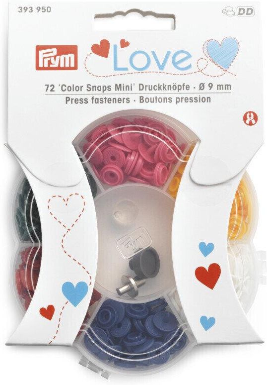 To jest automatyczne tłumaczenie wygenerowane przez software:To zamykane pudełko w kształcie kwiatka zawiera 72 zatrzaski Color Snaps Mini z serii Prym Love w sześciu różnych, wesołych kolorach - dla bezpiecznego przechowywania i łatwego usuwania. Absolutnie idealne do odzieży niemowlęcej i dziecięcej Popularne zatrzaski Color Snaps Mini są produkowane z wysokiej jakości tworzywa sztucznego, a szczypce VARIO to jedyne narzędzie potrzebne do przymocowania ich do ubrania. Dołączony zestaw narzędzi i instrukcja krok po kroku oraz fakt, że nie ma potrzeby wykonywania otworów przed rozpoczęciem, ułatwiają już przy pierwszej próbie pracy z tymi zatrzaskami, nawet początkującym.