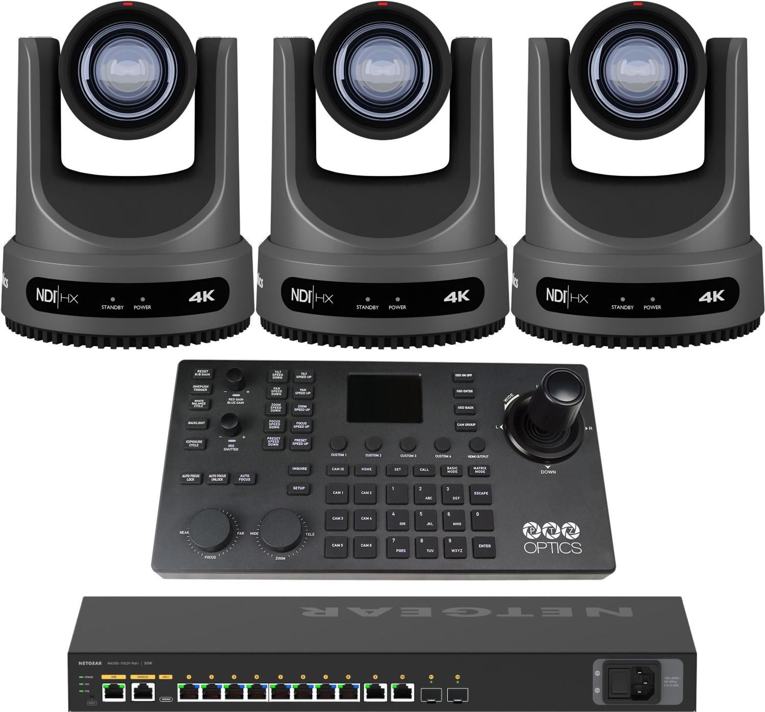 PTZOptics Move 4K 30x 3 Full Bundle | Zestaw 3x Kamera PTZ + Kontroler PTZOptics SuperJoy + Switch Netgear AV Line PoE+ Poznań
