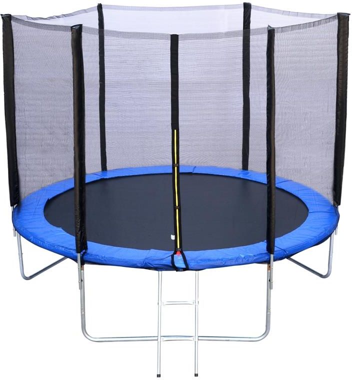 TRAMPOLINA OGRODOWA 8FT 252CM SIATKA DRABINKA KOLOR NIEBIESKI Trampolina + siatka zabezpieczająca wewnętrzna + metalowa drabinka Trampolina ogrodowa firmy R-SPORT to idealne rozwiązanie dla każdego, kto lubi spędzać aktywnie czas na świeżym powietrzu. Gwarantuje ona świetną zabawę zarówno dzieciom, stanowiąc przy tym doskonałą alternatywę dla wszelkiego typu urządzeń elektronicznych, jak i dorosłym, chcącym zatroszczyć się o swoją kondycję. Z powodzeniem można z niej korzystać od wiosny aż do początku jesieni. Za sprawą energicznych podskoków, a w przypadku osób bardziej zaawansowanych także akrobacji, trampolina ogrodowa R-SPORT pozwoli nam wzmocnić mięśnie, poprawić pracę serca, dotlenić organizm, jak również spalić zbędne kalorie. W efekcie tego nie będziemy musieli obawiać się o problemy zdrowotne, ani też piękną, zgrabną sylwetkę. ZALETY TRAMPOLINY: Siatka zabezpieczająca zewnętrzna, Metalowa drabina (66x31cm), Wytrzymała mata Sprężyny ocynkowane, galwanizowane, od góry zabezpieczone kołnierzem wypełnionym pianką (niebieski okrąg na zdjęciu), 3 podwójne stabilne nogi w kształcie litery U, Wejście do trampoliny zamykane na zamek błyskawiczny i rzepy, Słupki metalowe, pokryte miękką szarą pianką zabezpieczającą, Tunele na słupki ułatwiające montaż siatki zabezpieczającej, Mata na bezpiecznej wysokości (ok. 55 cm) Zestaw zawiera: trampolina ogrodowa (mata + stelaż), siatka zabezpieczająca, metalowa drabinka, instrukcja obsługi, DANE TECHNICZNE: szerokość (ze słupkami): 252 cm - 8FT, wys. trampoliny (maty): 55 cm, wys. siatki: 180 cm, łączna wysokość: ok 235 cm ilość nóg: 3 podwójne (w kształcie litery U), ilość sprężyn: 42 szt, ilość słupków 6 szt. (wszystkie w kolorze czarnym), siatka zewnętrzna, dwustopniowa drabina (66x31 cm), galwanizowane elementy stelaża, waga: ok 38 kg, Maksymalne obciążenie: 100 kg wymiary kartonu: 130x52x18 cm oraz 100x31x11 (dwa kartony) Przed rozpoczęciem użytkowania należy dokładnie zapoznać się z instrukcją. Używanie trampoliny wymaga każdorazowej ścisłej opieki i nadzoru osoby dorosłej. Trampolina do samodzielnego łatwego montażu - prosta instrukcja w środku. Do montażu raczej wymagane 2 osoby (znacznie ułatwi to montaż).