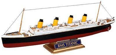 R.M.S. Titanic brytyjski transatlantyk typu Olympic. Podczas swojego dziewiczego rejsu z Southampton do Nowego Jorku, zderzył się 14 kwietnia 1912 roku z górą lodową i zatonął. Plastikowy model do sklejania Revell (REV-05804) nie zawiera w komplecie farb i kleju. Długość: 233 mm Skala: 1:200 Stopień trudności: 3 Ilość elementów: 40 Klasa: 10+ Oprawa: pudełko Format: 253x132 mm