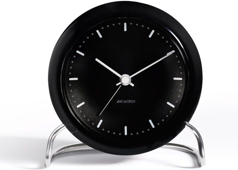 Budzik City Hall duńskiej marki Rosendahl. Budzik to zminiaturyzowany projekt zegara Arne Jacobsena, który stanowi stylowe połączenie modernizmu z minimalizmem. Elegancka biała tarcza z dyskretnymi czarnymi wskazówkami przykryta jest szkłem odpornym na zarysowania. Budzik wyposażony jest w podświetlenie LED, posiada również funkcję drzemki. Produkt został wykonany z wysokiej jakości wytrzymałych materiałów. Materiał: szkło, tworzywo, stal Kolor: czarny Średnica: 11 cm Wysokość: 12 cm Waga: 0.4 kg Zasilanie: baterie AA 1,5 V Projekt: Arne Jacobsen, Rosendahl