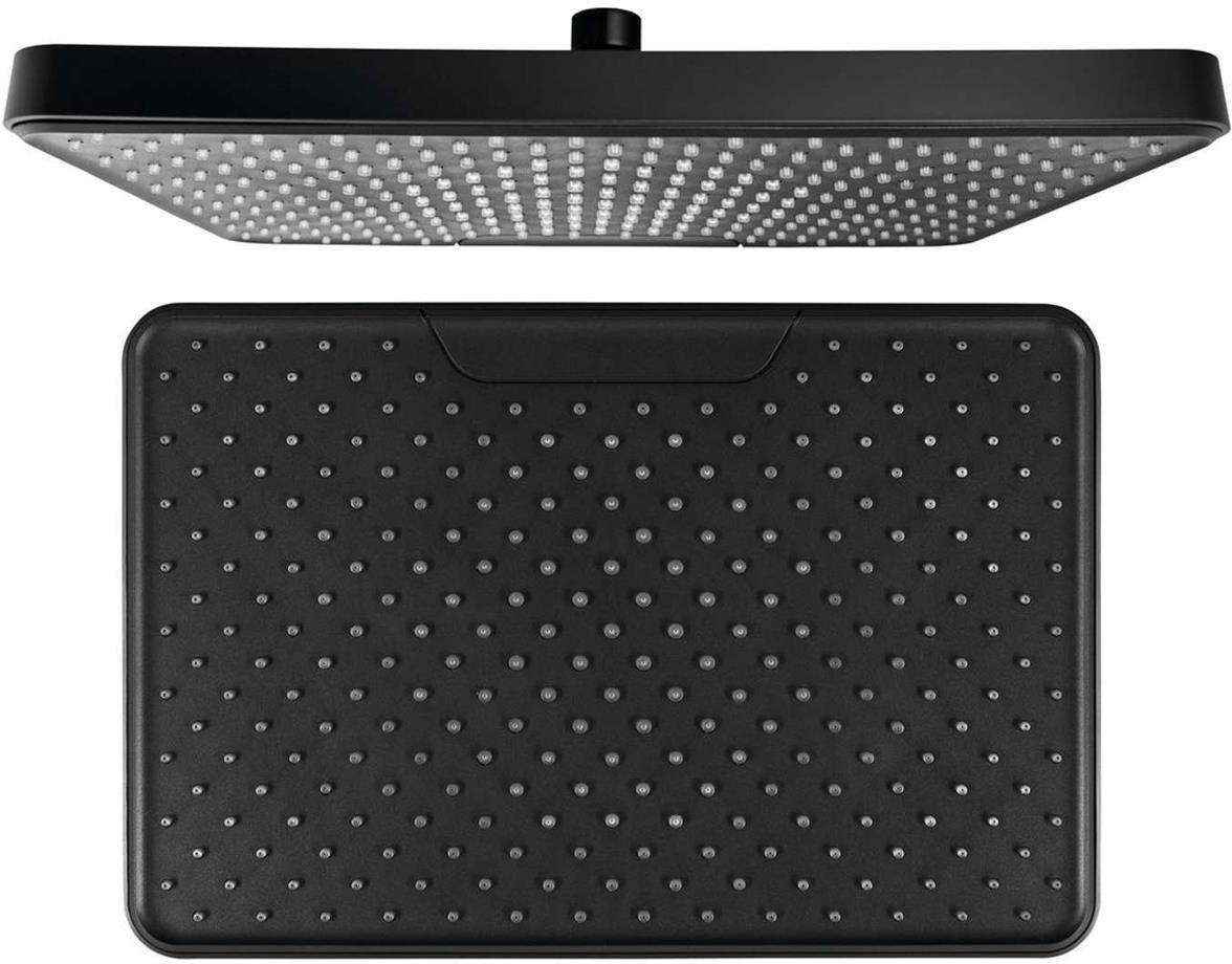 Deszczownia prostokąt 20,5x30,5 cm, czarny mat SK152B Deszczownia wykonana z ABS wyposażona w system anti-calc zapobiegający osadzaniu się kamienia. Strumień deszczowy jaki wydobywa się z tej głowicy prysznicowej - orzeźwia i odświeża - to delikatny, rozłożysty deszcz w postaci cienkich strużek …