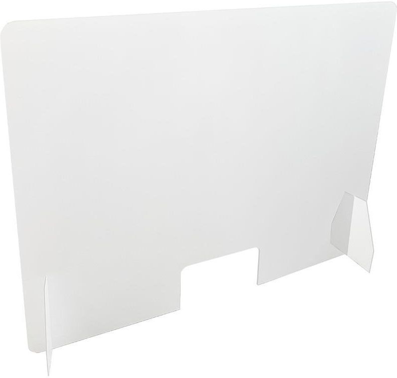 Niezbędne wyposażenie w każdym miejscu sprzedaży, czy informacji – wszędzie tam, gdzie dochodzi do bezpośredniego kontaktu z klientem lub pacjentem. Ścianka wykonana jest tworzywa o grubości 3 mm. Występują dwa formaty 750×1000 oraz 750×500 mm, a każda ścianka ochronna wyposażona jest w wycięte okienko umożliwiające np. płatność lub wymianę towaru. Okienko posiada wymiar 120×250 mm. Ścianka ochronna dostarczona jest w trzech częściach do bardzo prostego montażu – wystarczy tylko wsunąć nóżki i produkt jest gotowy do użycia. Prosta i przemyślana ścianka ochronna, wykonana z tworzywa o grubości 3 mm Ścianka posiada wycięte okienko umożliwiające np. płatność bezdotykową. Wsuwane nóżki gwarantują stabilność. Ściankę zabezpiecza folia ochronna, którą należy zdjąć przed użyciem. Termin realizacji: ok. 14 dni