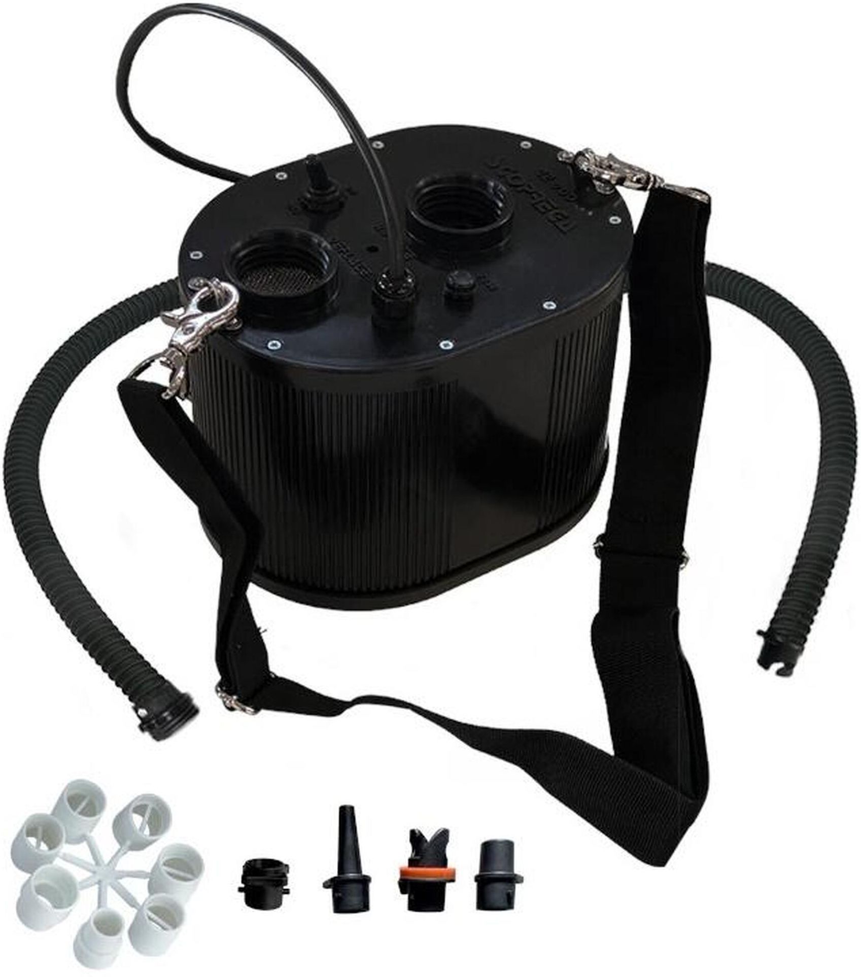 ELEKTRYCZNA POMPKA GE 900 AA+ 230V SCOPREGA Profesjonalna, elektryczna pompka. Scoprega GE 900 AA+ to idealne rozwiązanie dla profesjonalistów i wymagających użytkowników, którzy cenią sobie szybkość, komfort i trwałość. Pompka została zaprojektowana do pompowania i wypompowywania powietrza z różnego rodzaju produktów dmuchanych takich jak kajaki, pontony, materace duże namioty. Kluczowe zalety Scoprega GE 900 AA+ 230V: • Wyjątkowa wydajność: Maksymalne ciśnienie 250 mbar i przepływ powietrza 1700 l/min gwarantują błyskawiczne pompowanie nawet dużych obiektów. • Cicha praca: Dzięki zredukowanemu poziomowi hałasu (maks. 85 dB), praca z pompką jest komfortowa i nieuciążliwa. • Wszechstronność zastosowań: Idealna do pompowania pontonów, kajaków, materaców, zabawek dmuchanych, basenów i wielu innych przedmiotów. Funkcja spuszczania powietrza (Deflate) ułatwia szybkie opróżnianie. • Solidna konstrukcja: Wytrzymałe materiały i precyzyjne wykonanie zapewniają długotrwałą i bezawaryjną pracę. • Wygoda użytkowania: Długi wąż (140 cm) i kabel zasilający (2,9 m) zapewniają swobodę ruchów podczas pompowania. Pasek do noszenia ułatwia transport. • Kompletny zestaw: Pompka dostarczana jest z wszystkimi niezbędnymi akcesoriami, w tym z różnymi końcówkami, wężem i paskiem do noszenia. Dane techniczne • Maksymalne ciśnienie: 250 mbar (3,6 psi) • Maksymalny przepływ powietrza: 1700 l/min • Napięcie zasilania: 230 V AC 50 Hz • Maksymalny prąd: 4 A (230 V AC) • Maksymalny czas pracy: 20 minut (30 minut odpoczynku) – ważne dla zachowania żywotności urządzenia. • Waga: 2,4 kg • Funkcje: Pompowanie/Spuszczanie powietrza (Inflate/Deflate) • Wymiary pompki: 17 x 23 x 17 cm • Wymiary pudełka kartonowego: 34 x 24 x 24 cm • Długość węża do pompowania: 140 cm • Długość kabla zasilającego: 2,9 m W zestawie • Pompka Scoprega GE 900 AA+ 230V • Pasek do noszenia • Zestaw końcówek • Wąż do pompowania