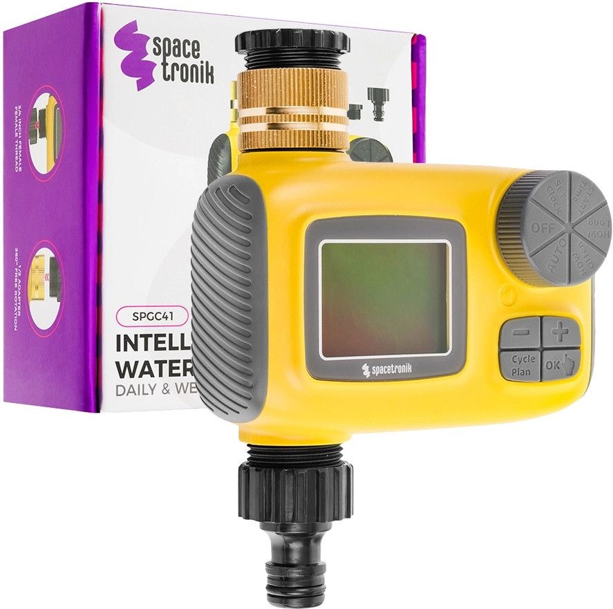 Inteligentny zawór wody Spacetronik SPGC41 z harmonogramem nawadniania i obrotowym gwintem 360°. Idealny do ogrodów, szklarni, trawników i systemów kropelkowych. Oszczędzaj wodę, czas i energię dzięki zaawansowanym funkcjom i łatwej obsłudze.