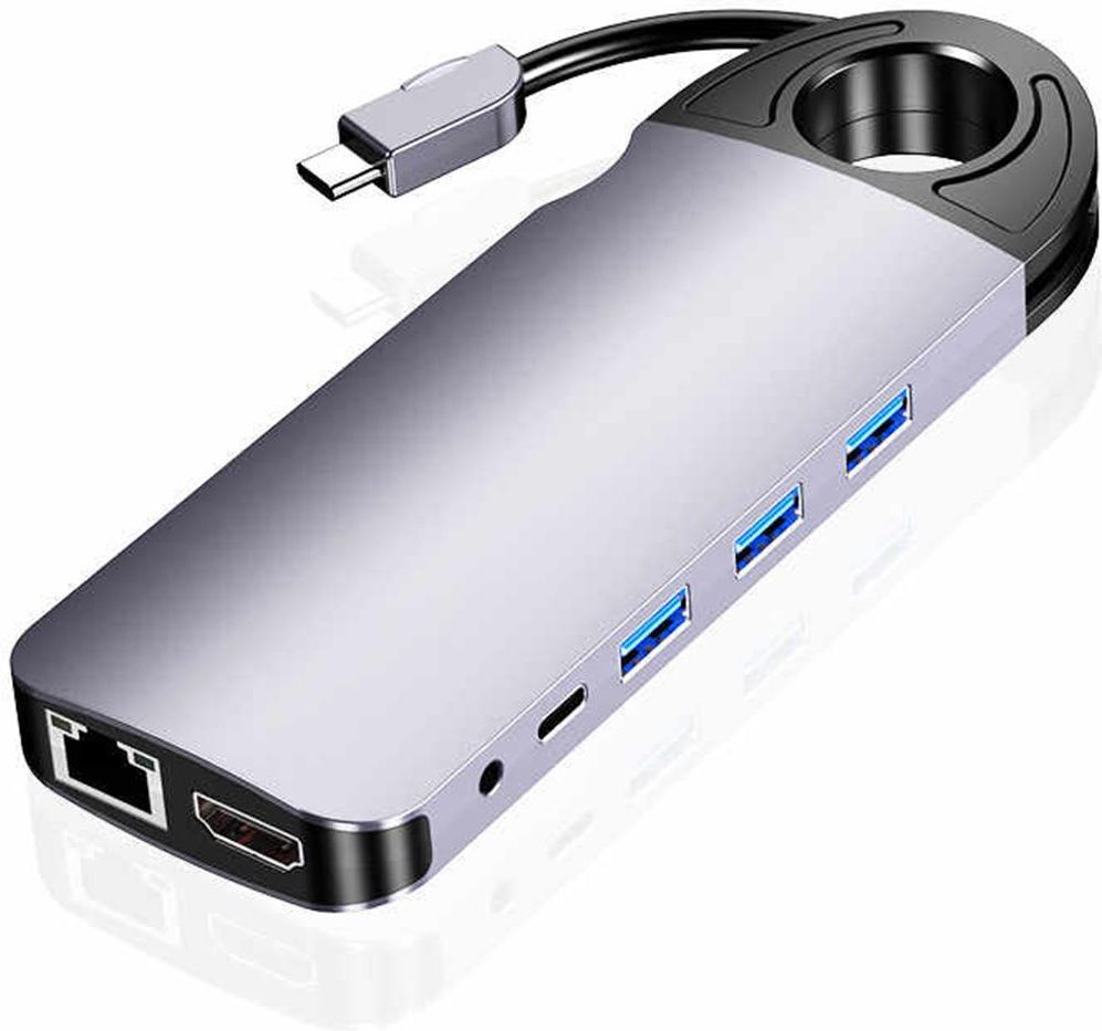 10w1 Konwerter Multiport Spacetronik USB-C HDMI VGA RJ45 USB 3 Multiport Premium USB-C SPU-M01 Multiport marki Spacetronik to urządzenie 10 w 1, który w swojej solidnej, aluminiowej obudowie posiada najbardziej popularne gniazda do codziennego użytku. Multiport posiada ukryty kabel, dzięki czemu nawet nieużywany wygląda elegancko oraz ryzyko zerwania kabla jest minimalne. Dzięki temu mediaport idealnie nadaje się do podróży, przenoszenia a nawet do zaczepienia - dzięki orginalnemu uchwytowi. Szybkie ładowanie Quick Charge USB-C Urządzenie posiada opcje szybkiego ładowania dzięki czemu możemy zasilić . Maksymalna moc wyjściowa portu USB-C PD: 60 W Obsługa internetu 1 Gigabit dzięki gniazdu RJ45 Dzięki obsłudze internetu o tak dużej przepustowości, możesz oglądać filmy bez buforowania lub ekspresowo pobierać pliki. Multiport z gniazdem HDMI i VGA Podwójny interfejs HDMI + VGA dla różnych urządzeń, pozwalający na przesyłanie sygnału za pomocą HDMI do rozdzielczości 4K, oraz VGA do rozdzielczości 1K. Pozwala komputerom, tabletom, telefonom komórkowym i innym urządzeniom łączyć się z telewizorami lub projektorami. 3 gniazda USB w multiporcie SPU-M01 Multiport posiada 3 gniazda USB 3.0 dzięki czemu transmisja jest dużo szybsza niż w standardowych gniazdach. Gniazda obsługują wszystkie urządzenia dostępne na rynku. Dodatkowo gniazda mogą zasilać urządzenia zewnętrzne (5V 1A) Czytniki kart SD/TF Dzięki wbudowanemu czytnikowi kart SD/TF, możemy rozwiązać problem braku czytników w Macbook'ach oraz Ultrabookach. Czytniki obsługują karty MicroSD, MicroSDHC, MicroSDXC. SD, SDHC, SDXC i wiele innych. Przejściówka z USB-C na jack 3,5mm gniazdo jack obsługujące słuchawki oraz mikrofon. Dzięki takiemu rozwiązaniu obsługa audio jest niezwykle łatwa. Dostępne gniazda w multiporcie SPU-M01 3x gniazdo USB 1x gniazdo USB-C 1x gniazdo HDMI 2x czytnik kart SD / TF 1x gniazdo VGA 1x gniazdo jack 3,5mm 1x gniazdo RJ45 Specyfikacja miękki, elastyczny kabel USB-C HDMI - 4Kx2k 30Hz / 3840*2160 Audio - Złącze słuchawkowe 3,5 mm Gigabit LAN 1* 10M/100M/1000M ethernet speed 3* USB 3.0 5Gbps 5V/0.9A @4.5W USB-C - obsługa ładowania 60 lub 87W Wymiary: 160*55*17mm Waga: 126g