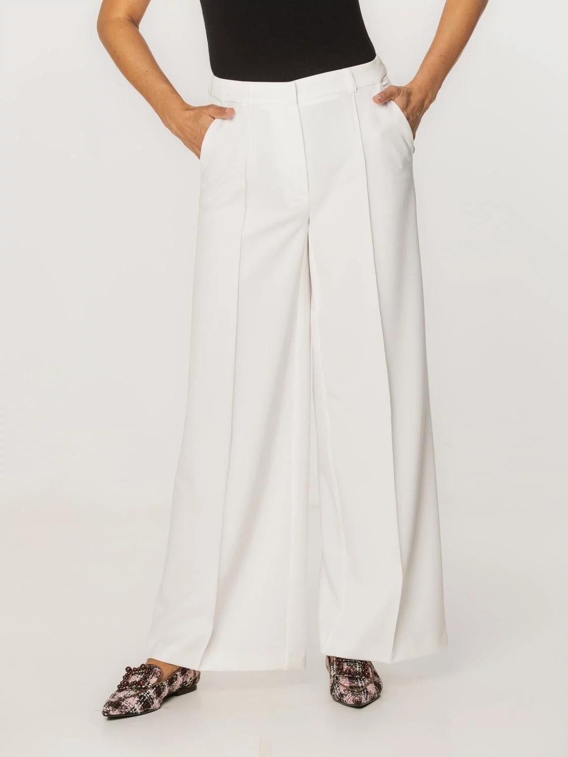 Eleganckie spodnie z szeroką nogawką Spodnie szwedy to totalny must-have w garderobie każdej stylowej kobiety! Precyzyjne szwy i zakładki dodają im elegancji. Luźny krój z bardzo szerokimi nogawkami typu wide leg i przeszytym kantem (bez możliwości zaprasowania) gwarantuje stylowy wygląd niezależnie od okazji! Doskonałej jakości mieszanka tkanin wizualnie przypominająca len nadaje im letni i naturalny charakter. Spodnie świetnie sprawdzą się w zestawieniu z koszulą i żakietem, jak również z T-shirtem i sandałami. Posiadają wsuwane kieszenie oraz szlufki na pasek. Zapinane są na haftkę i mają ukryty suwak. Dostępne w różnych kolorach. Tkanina: 60% wiskoza, 35% poliester, 5% elastan Kolor główny: białe (śmietankowe) o gładkiej fakturze Nogawki: szerokie z przeszytymi kantami Kieszenie: dwie boczne Producent: Willsoor Gwarancja: 24 m-ce Uszyte w Polsce
