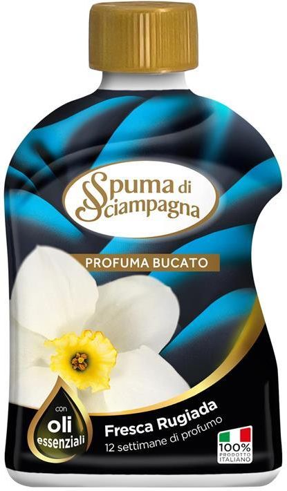 Spuma di Sciampagna perfumy do prania Fresca Rugiada (opakowanie 230ml) Daj się oczarować eleganckiemu i wyrafinowanemu zapachowi skoncentrowanych perfum do prania Soffio d'Oriente. Perfumy zmiękczające do tkanin zawierają technologię zaprojektowaną w celu stopniowego uwalniania zapachu. Musujący i owocowy zapach otuli Twoje ubrania przez cały dzień. Produkt testowany dermatologicznie. Kup teraz i sprawdź nowe perfumy do prania o długotrwałym zapachu.