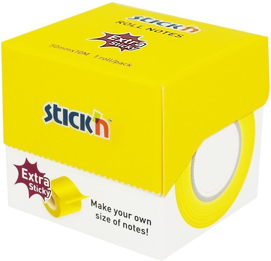Notes samoprzylepny 50mmx10m na rolce żółty neon STICKN ✅ ✔️ Notes samoprzylepny na rolce 50mmx10m w kolorze żółtym neonowym Karteczki samoprzylepne na rolce: to Ty decydujesz jakiej długości karteczkę potrzebujesz, bo możesz ją łatwo odciąć za pomocą krawędzi opakowania.Mocny klej jest umieszczony …