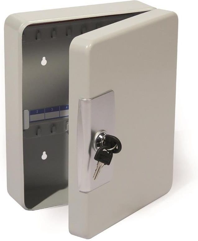 Szafka na klucze HF250N-32K – metalowa szafka na klucze – kolor szary – 32 miejsca na klucze – zamek na klucz – w komplecie 40 zawieszek na klucze – wymiary: 250x200x78 mm