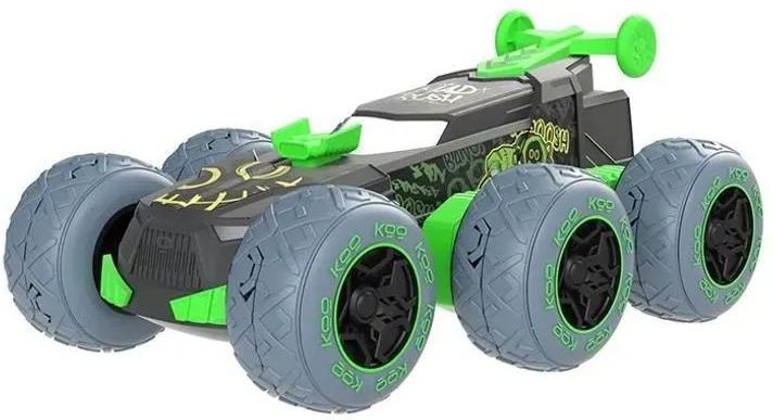 Kaboom Auto Zdalnie Sterowane KOTARO 009 na akumulator diody Led 14 km/h KOTARO 009 posiada 6 kółek i nie boi się żadnych przeszkód. Potrafi nawet wchodzić po schodach. W trybie wirowania jest nietykalny. Wyposażony w obrotowe ramiona i sześć kół, ten samochód jest gotowy na każdą przeszkodę. Z łatwością może wspinać się po schodach lub jeździć po obu stronach. Może także jeździć na 6 lub 4 kołach i obracać się według Twojego uznania. Za pomocą kontrolera możesz sterować różnymi dźwiękami lub muzyką. Ten samochód jest wyposażony w światła LED, które nadają mu niesamowity wygląd i umożliwiają jazdę nawet w najciemniejszych miejscach. Podstawowy uniwersalny kontroler 2,4 GHz - kontroler auta KOO jest uniwersalny i pozwala na jazdę dowolnymi samochodami KOO. Możesz programować sekwencje jazdy samochodem i odtwarzać je na żądanie za pomocą pilota zdalnego sterowania. Akumulatory - wszystkie samochody KOO są wyposażone w akumulatory, bo nadszedł czas na zmiany. Pilot zdalnego sterowania wymaga baterii 3 X 1.5V AAA (brak w zestawie), Auto: 1 X 3.7V 1200 MAh Li-Ion (w zestawie). Czas Zabawy: do 20 minut. Czas ładowania: 120-180 minut. Prędkość: do 14 km/h. Wiek: 5+