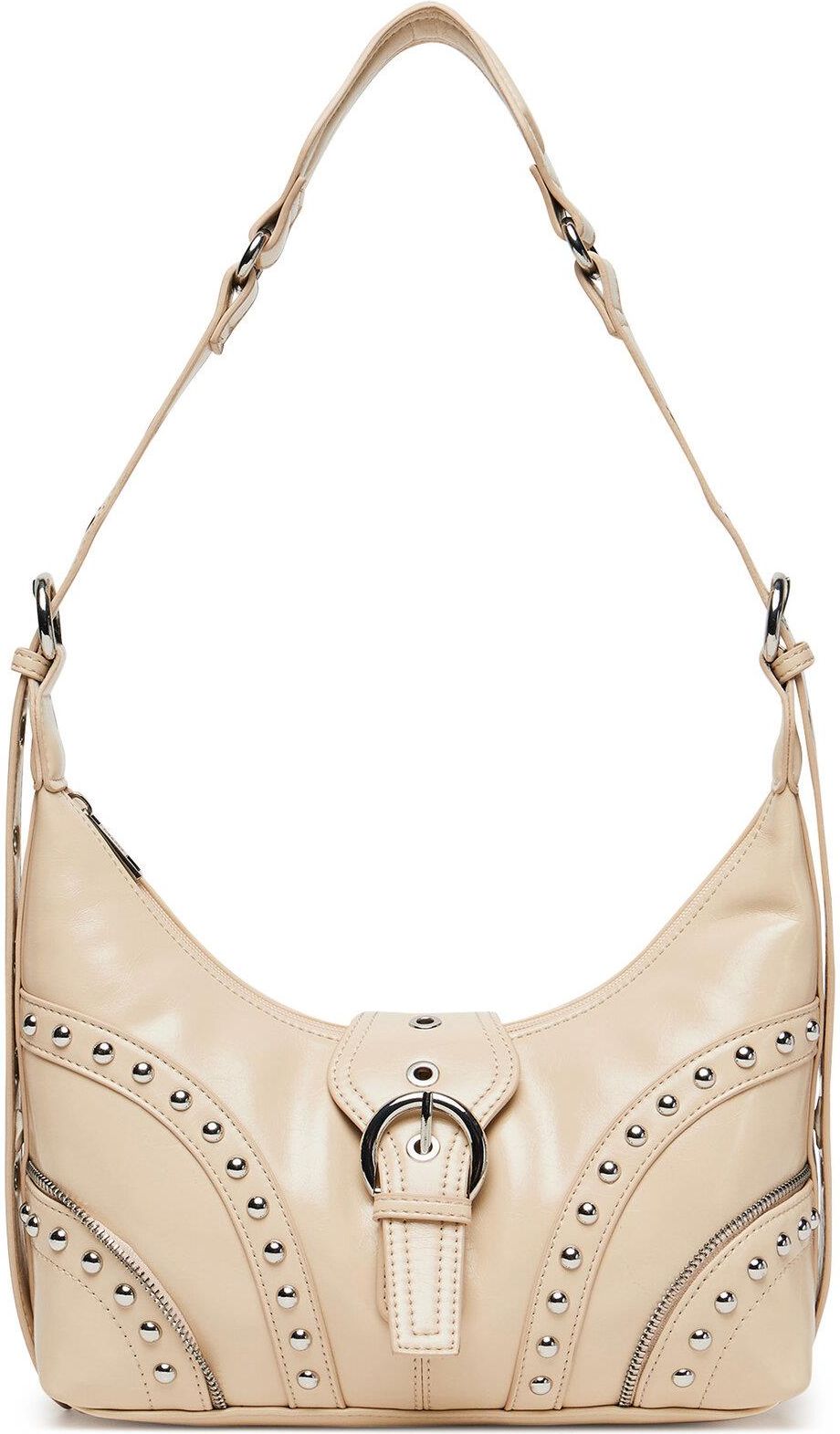 Torebka DeeZee to stylowy dodatek, który przyciąga wzrok swoim niepowtarzalnym designem. Wykonana z wysokogatunkowego tworzywa syntetycznego, wyróżnia się twardą konstrukcją, która zapewnia trwałość i doskonały wygląd na długo. Jej charakterystyczny kształt oraz zdobienia w postaci dżetów i oczek …