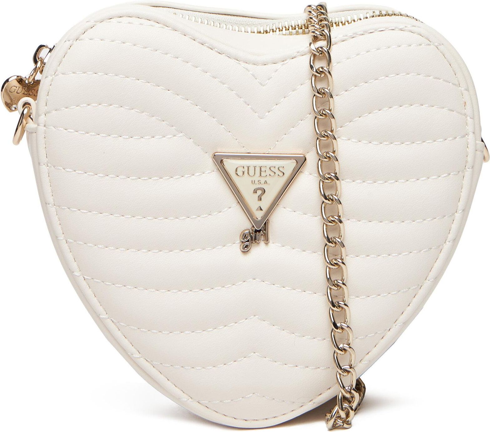 Guess Dziewczynka Torebka J5BZ12WGT10 Écru Torebka Guess to stylowy dodatek, który zachwyci każdą młodą miłośniczkę mody. Wykonana z wysokiej jakości imitacji skóry, łączy trwałość z eleganckim designem. Jej mały rozmiar sprawia, że jest idealna na najważniejsze drobiazgi, a twarda konstrukcja zapewnia estetyczny wygląd i ochronę zawartości. Dodatkowy dopinany łańcuszek nadaje jej wyjątkowego charakteru i pozwala na różne sposoby noszenia. To doskonały wybór dla dziewczynek, które chcą wyróżnić się stylowym akcesorium na każdą okazję!