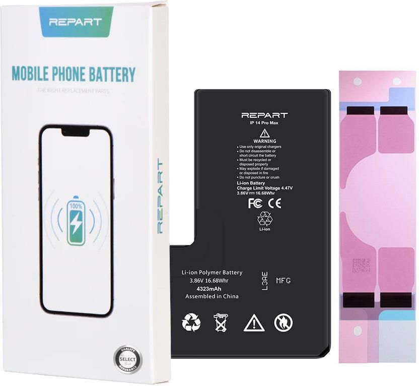 Bateria Akumulator do Apple iPhone 14 Pro Max 4323mAh Bez BMS REPART Baterie pochodzą z bieżącej produkcji i nie są starsze niż kilka miesięcy. REPART gwarantuje najwyższą jakość i długą żywotność akumulatorów. Uwaga! Bateria bez taśmy BMS (Battery Management System) wymaga odpowiednich narzędzi do montażu i przeznaczona jest dla profesjonalnych serwisów. Specyfikacja Producent: REPART Pasuje do modelu: iPhone 14 Pro Max Rodzaj ogniw: Li-ion (litowo-jonowe) Pojemność: 4323 mAh Napięcie: 3.86V Certyfikaty: CE, RoHS Kod magazynowy: 10341 Cechy produktu Zabezpieczenie przed przeładowaniem, przegrzaniem Zabezpieczenie przed przeciążeniem i przepięciami Stałe napięcie Długa żywotność i wydajność Szybkie ładowanie Zestaw zawiera Baterię zamienną do Apple iPhone Taśmę pod baterię Kartonowe opakowanie Repart