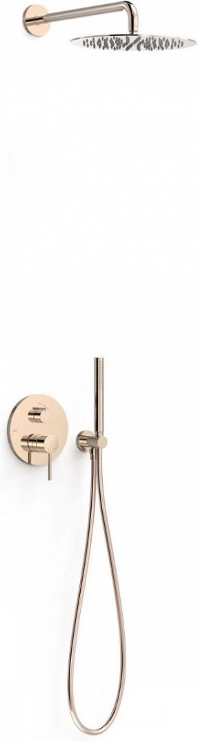 Tres zestaw natryskowy z baterią podtynkową Rapid-Box 24-K Różowe Złoto Zestaw prysznicowy marki Tres składa się z baterii prysznicowej, deszczownicy, elementu podtynkowego, przyłącza kątowego, ramienia prysznicowego, słuchawki prysznicowej, uchwytu na słuchawkę oraz węża. Montaż baterii jest podtynkowy, dzięki czemu część techniczna zostanie zamaskowana w ścianie. Jest to model jednouchwytowy tzw. mieszaczowy, który możemy obsługiwać jedną ręką. Za pomocą dźwigni jesteśmy w stanie w łatwy sposób ustawić temperaturę wody oraz siłę strumienia. Bateria nie posiada termostatu, czyli nie ma możliwości ustawienia stałej temperatury. Deszczownica jest w kształcie okręgu o wymiarach 30x30cm. Długość ramienia to 40cm. Zestaw wykonany w kolorze 24-K różowe złoto. Z regulacją strumienia Dystrybutor ceramiczny 2-drożny W zestawie z korpusem podtynkowym Natrysk ścienny ze stali nierdzewnej Ø 300 mm. z kolankiem Uchwyt do słuchawki prysznicowej z przyłączem w ścianie Słuchawka prysznicowa z mosiądzu z systemem zapobiegającym osadzaniu się kamienia Satynowy wąż SPECYFIKACJA Producent/Dystrybutor: Tres Numer katalogowy: 26228004OP Seria: Study Exclusive Montaż: podtynkowy Rodzaj regulacji: jednouchwytowa Sposób regulacji: dźwignia Kształt deszczownicy: okrągły Rozmiar deszczownicy [cm]: 30x30 cm Kolor producenta: 24-k różowe złoto Zawartość zestawu: bateria prysznicowa, deszczownica, słuchawka prysznicowa, uchwyt prysznicowy, wąż prysznicowy