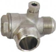 Zawór zwrotny 1/2"Z x 3/8"Z z odpowietrzaniem do kompresora, sprężarki. Umożliwia przepływ powietrza tylko w jednym kierunku. Średnica otworu odprężającego: 6mm.