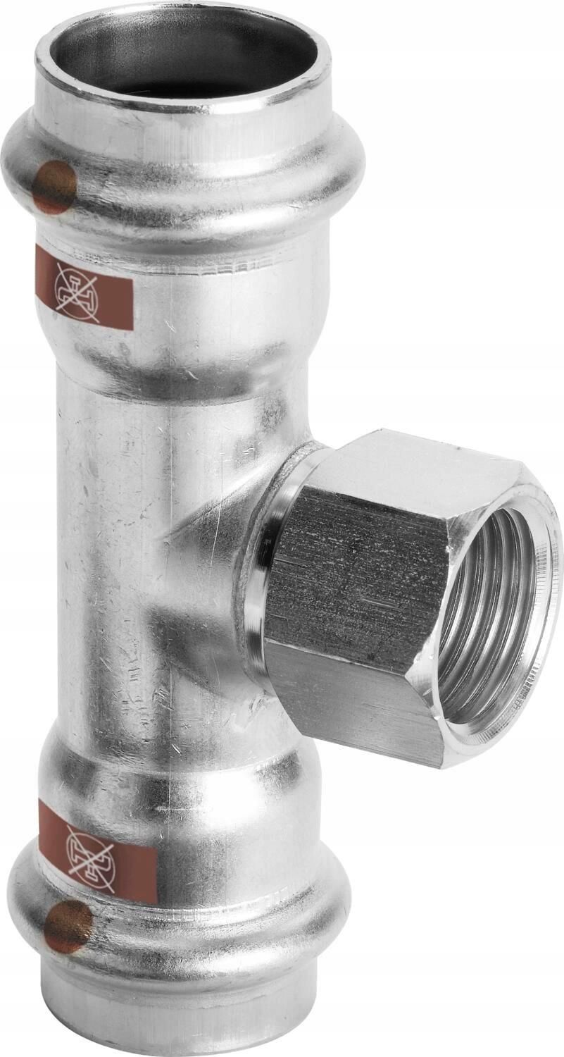 Trójnik ze stali nierdzewnej przyłącze zaprasowywane 22 mm x 3/4 x 22 mm GW Temponox 1717.2 Zoptymalizowany pod względem przepływu system złączek zaprasowywanych ze złączkami zaprasowywanymi wykonanymi ze stali nierdzewnej 1. 4301 i rurami ze stali nierdzewnej 1. 4520. W celu ochrony elementu uszczelniającego złączki zaprasowywane wyposażone są w cylindryczną prowadnicę rury. Złączka zaprasowywana od d76,1 z pierścieniem nacinającym ze stali nierdzewnej do zapewnienia mechanicznej wytrzymałości połączenia. W celu zabezpieczenia rury są wyposażone w zaślepki. Zaprasowanie następuje przed i za gniazdem elementu uszczelniającego. Nadaje się do instalacji natynkowych i podtynkowych, przewodów rozprowadzających i pionów instalacyjnych.
