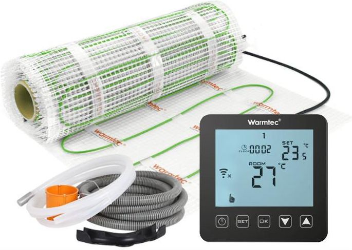 elektryczne ogrzewanie podłogowe, mata grzewcza, 15,0m², Wi-Fi, termostat pokojowy, regulator temperatury, sterowanie ogrzewaniem podłogowym, sterownik temperatury, wyświetlacz LCD, pod płytki, do łazienki, do domu
