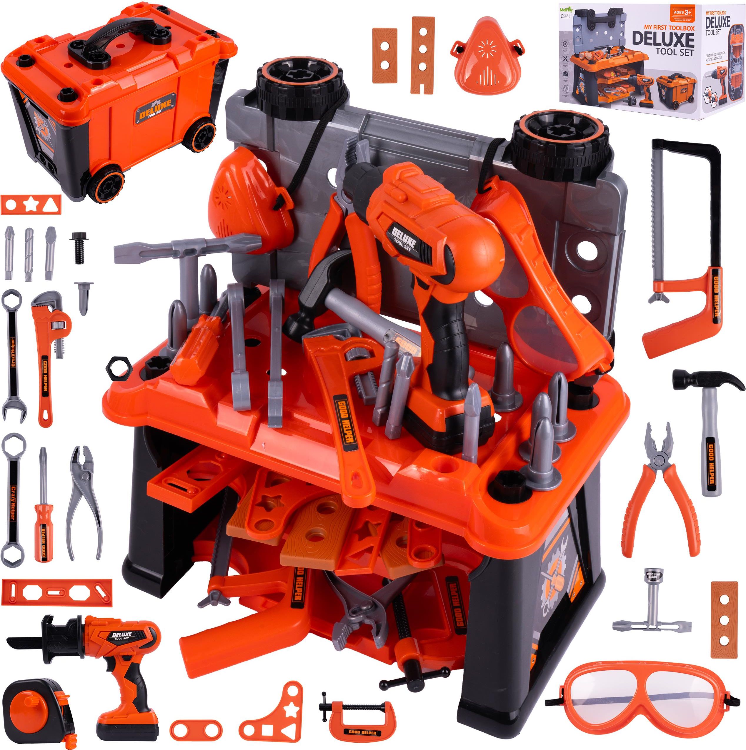 WARSZTAT DLA DZIECI MAJSTERKOWICZA W KUFERKU WALIZKA NA KÓŁKACH 65EL DUŻY CECHY Realistyczne narzędzia - zestaw zawiera narzędzia wyglądające jak prawdziwe, takie jak wiertarka, kombinerki, klucze i młotek. Stolik warsztatowy - zestaw jest wyposażony w stolik warsztatowy, który umożliwia dziecku …