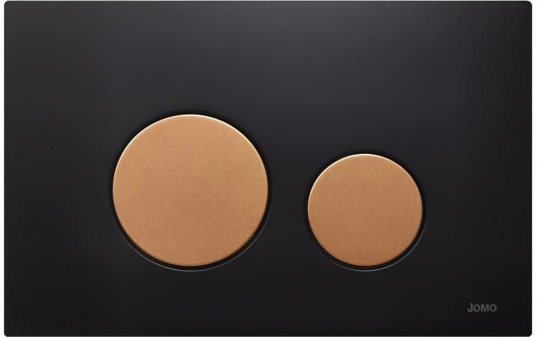 JOMO płyta przyciskowa Switch do WC czarny mat/miedź Płyta przyciskowa Switch zachwyca swoim ponadczasowym i eleganckim wyglądem. Daje możliwość podwójnego spłukiwania. Idealnie pasująca do spłuczki podtynkowej SLKplus. Dzięki swojemu minimalistycznemu designowi, doskonale wpasuje się w wystrój niemal każdego wnętrza. Specjalne cechy przycisku do WC Switch Przycisk wykonany z tworzywa sztucznego Wymiary: 230 x 150 x 6 mm W zestawie ramka montażowa Spłukiwanie dwuilościowe Montaż bez narzędzi Łatwy w czyszczeniu i konserwacji Płyta główna w kolorze czarnym matowym Przyciski w kolorze miedzianym Przyciski w okrągłym kształcie Producent: WERiT Przycisk do WC Switch pasuje do stelaży JOMO z serii SLK