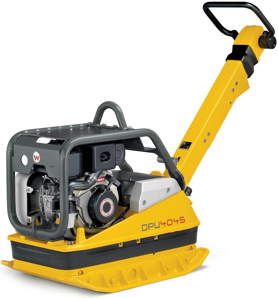 Zagęszczarka rewersyjna DPU 45 Yeh marki Wacker Neuson świetnie sprawdza się tam, gdzie stawiane są bardzo wysokie wymagania w zakresie wydajności. Ponadto oferuje doskonałe właściwości pod względem trwałości i wygody obsługi. Nadaje się do zagęszczenia warstw przeciwmrozowej, podbudowy konstrukcji drogowych, ścieżek i parkingów. Dzięki wysokiej częstotliwości zagęszczarka może być powszechnie stosowana, umożliwiając zagęszczanie średniej ciężkości nawierzchnie brukowe. Opis wariantu: Posiada licznik godzin pracy Zalety Niskie wibracje ręka-ramię, Dyszel z regulacją wysokości, Duże ucho do podnoszenia, Licznik godzin pracy, Gruba, odporna na zużycie podstawa z żeliwa sferoidalnego, Samonapinający pasek klinowy i bezobsługowy alternator, Wszystkie elementy wymagające konserwacji są łatwo i szybko dostępne, Bezpieczne użytkowanie – maszyna oddala się od operatora po zwolnieniu uchwytu, Intuicyjna prowadnica – kontrola kierunku ruchu i prędkości w tej samej sekwencji ruchu (bez zmiany chwytu obie ręce pozostają na prowadnicy), Zabezpieczenie silnika – brak możliwości uruchomienia w przypadku braku oleju. Parametry techniczne Typ silnika: Spalinowy (diesel) Producent i model silnika: Yanmar Obroty: 3000/min Pojemność zbiornika paliwa: 3,3 l Zużycie paliwa: 1,4 l/h Częstotliwość: 69 Hz Pojemność skokowa: 320 cm³ Siła odśrodkowa: 45 kN Prędkość robocza: 24 m/min (w zależności od gruntu i od czynników zewnętrznych) Maksymalna wydajność powierzchniowa: 870 m²/h Rozruch: Elektryczny Moc: 4,5 kW / 6,1 KM Szerokość płyty roboczej: 440 mm Szerokość robocza: 600 mm (z płytą poszerzającą) Poziom mocy akustycznej: 108 dB(A) Poziom drgań: Długość: 1661 mm (dyszel w pozycji roboczej) Wysokość: 1308 mm Zdolność pokonywania wzniesień: 36,4% Prześwit: 764 – 859 mm Ciężar.: 376 kg