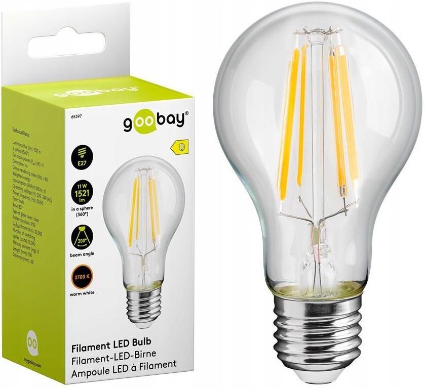 ŻARÓWKA LED FILAMENT 11W 230V E27 1521LM 2700K E 65397 GOOBAY Poznań