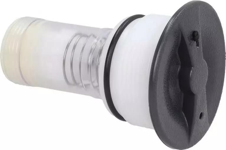 Zawór redukcyjny ciśnienia SPA Intex 12589A Dane techniczne Producent: Intex Długość: ok. 9,5 cm Waga: 0.02 kg Średnica gwintu: ok. 50,23 mm Opis przedmiotu Zawór redukcyjny ciśnienia powietrza do SPA Intex w kolorze szarym Stosowane w SPA Intex: 28440, 28442 Greywood Deluxe (Model SB-HWF20) 28450, 28452 – Greystone Deluxe (Model SB-HSWF20) 28446, 28472 – Chevron Deluxe ((Model SB-HSWF20) Ponadto pasują do SPA Intex o innej kolorystyce: 28426, 28428, 28458, 28462, 28476.
