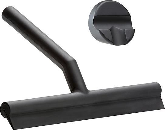 Wspaniałość! Wreszcie mogę powiesić ściągaczkę i nie zajmuje ona miejsca na półce lub wannie. Sprytnie wykonana - jest cała pokryta gumą, tak że gumą, którą ściąga się wodę, przechodzi płynnie w gumę otaczającą uchwyt.