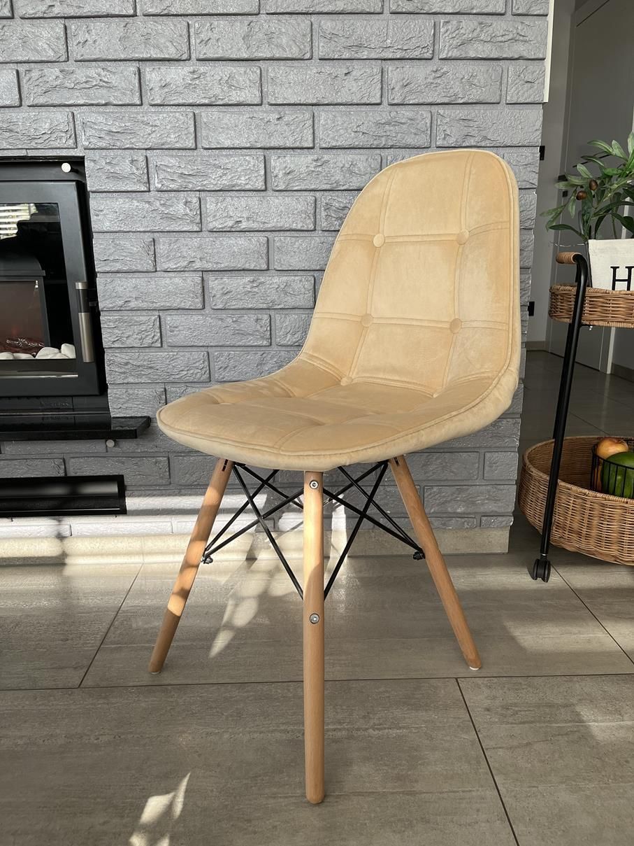 Big Meble Krzesło Tapicerowane 014 Welur Beżowe 1622 Praszka