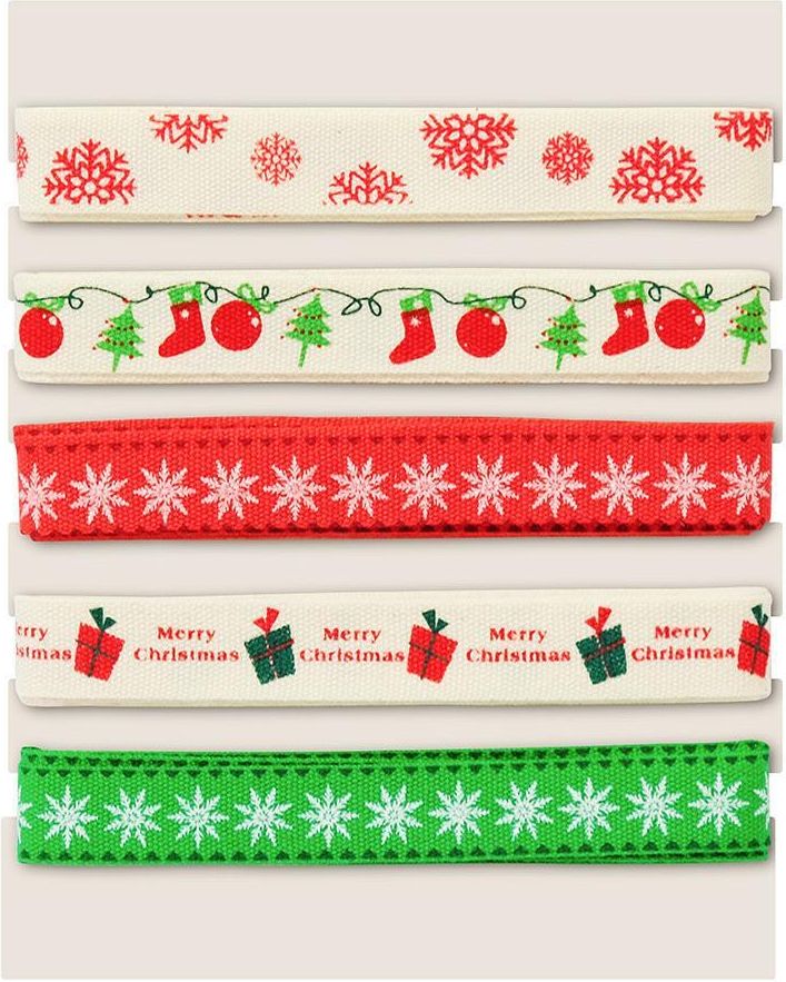 Zestaw tasiemek dekoracyjnych Święta marki Galeria Papieru. Doskonale sprawdzą się podczas zdobienia kartek okolicznościowych, pudełek i torebek na prezenty. Moty: wzory świąteczne Ilość: 5 szt. Długość: 1.5 mb