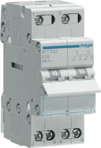 Przełącznik HAGER SFT232 I-0-II 2P 32A Dane techniczne EAN: 3250615510020 Kod produktu: SFT232 Rozmiar zacisków- linka: 1,5 / 10mm² Rozmiar zacisków- drut: 1,5 / 16mm² Wysokość: 83 Szerokość: 35 Ilość modułów: 2 Głębokość: 70 Częstotliwość prądu: 50/60 …