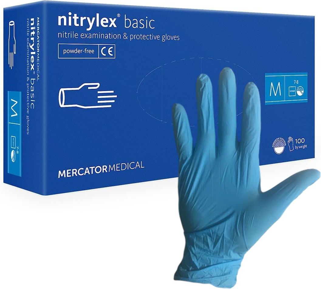 Rękawice Nitrylowe 100 sztuk / Niebieskie / Nitrylex Classic Blue Oferta dotyczy 100 sztuk rękawiczek Kolor: niebieski Marka: MERCATOR MEDICAL PAKOWANIE: 100 sztuk / 1 karton pasują na prawą i lewą rękę powierzchnia zewnętrzna mikroteksturowana z teksturą na końcach palców od wewnątrz polimeryzowane i chlorowane mają zastosowanie w środowisku medycznym, przeznaczone do ochrony pacjenta i użytkownika przed zanieczyszczeniem krzyżowym, przeprowadzania badań lekarskich, diagnostycznych, czynności terapeutycznych oraz do prac ze skażonym materiałem dopuszczone do kontaktu z żywnością stanowią wyrób medyczny klasy I jak i środek ochrony indywidualnej kategorii III pakowane po 100 szt. w opakowaniu Spełniają wymagania norm EN ISO 15223-1 EN 1041 Rozporządzenie (UE) 2017/745 EN 1041 EN 16523-1 EN ISO 374-1 EN ISO 374-2 EN ISO 374-4 EN 420 EN 455(1-4) EN ISO 13485:2016 EN ISO 374-5 Gdzie możemy zastosować rękawice nitrylowe? weterynaria stomatologia salony tatuażu salony fryzjerskie salony kosmetyczne opieka pielęgniarska przemysł elektroniczny drobne prace montażowe prace domowe i ogrodnicze przemysł oraz usługi gastronomiczne przemysł samochodowy i mechaniczny Dlaczego warto kupić rękawice nitrylowe ? Wygodne, super miękkie i elastyczne bezpudrowe rękawice nitrylowe zapewniają dodatkowe bezpieczeństwo w wielu zastosowaniach. Nie bez kozery nazywane są rękawicami z syntetycznego lateksu. Dzięki ulepszeniom technologii i stale doskonalonemu procesowi produkcji, umożliwiają doskonałą wrażliwość dotykową zapewniając pełny zakres ruchu, minimalizując zmęczenie dłoni. Nie zawierają naturalnego lateksu i stanowią doskonałą alternatywę dla osób z wrażliwą skóra dłoni. Rękawice chroniące przed substancjami chemicznymi, mikroorganizmami, wirusami, bakteriami oraz grzybami. Wyznaczanie odporności na przesiąkanie. wirus HIV - wielkość ok.110 -128 nm wirus HCV – wielkość ok. 30 -38 nm wirus H5N1 – wielkość 80 -120 nm wirus nCoV (koronawirus)- wielkość 60 -140 nm wirus HBV – wielkość ok. 42 -47 nm bakteriofag Phi-X 174 – wielkość 27 nm