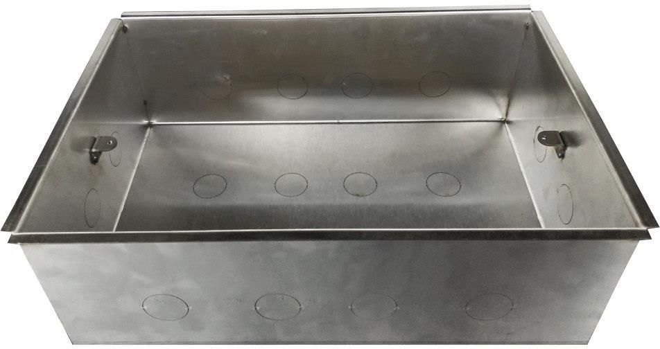 Puszka do gniazd podłogowych OR-GP-9203 do podłóg betonowych Puszka podłogowa przeznaczona jest do osadzenia gniazd podłogowych z serii OR-GP-9203 w wylewce betonowej. Puszka wyposażona jest w aż 20 wypustów, co umożliwia swobodne prowadzenie przewodów z dowolnego miejsca, minimalizując potrzebę zmian w instalacji. Minimalna głębokość montażowa wynosi 108 mm. Wykonana z trwałej stali nierdzewnej, gwarantuje wytrzymałość. Idealnie sprawdzi się do montażu gniazd podłogowych w wylewce betonowej w biurach, urzędach i salach konferencyjnyc Dane techniczne Wykonanie/rodzaj pokrywy:Prostokątny Liczba wypustów:20 Materiał obudowy:Stal nierdzewna Do instalacji wewnętrznej:tak Do instalacji zewnętrznej:nie Do instalacji w betonie:tak Szerokość zewnętrzna [mm]:328 Długość zewnętrzna [mm]:230 Długość wbudowania [mm]:215 Szerokość wbudowania [mm]:310 Minimalna głębokość [mm]:108