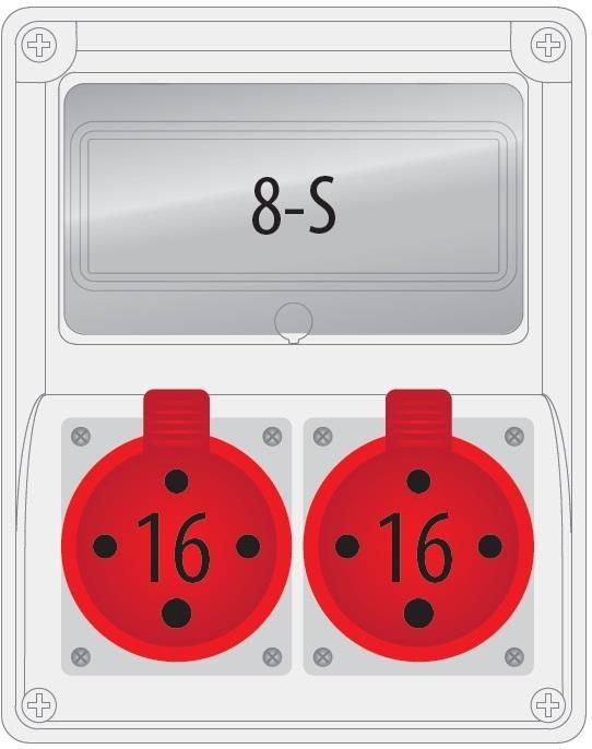 Gniazda: 2x16A/4p Tworzywo: PS/ABS Ochrona: IP44 Norma: PN-EN 60439-1 Wymiary: 200,5 x 252,5 x 153,7 mm