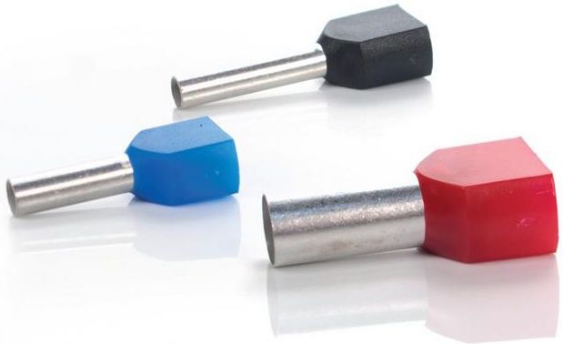 TULEJKA IZOLOWANA PODWÓJNA 2,5mm2 DUID-2x2,5-10 NIEBIESKI 100szt. Tulejkowe końcówki kablowe podwójne DUID stosuje się do zabezpieczenia końcówek przewodów typu linka przed ich rozszczepianiem, gdzie do jednego styku potrzebujemy doprowadzić dwa przewody. Zastosowanie ich zmniejsza ryzyko powstania zwarcia oraz zapewnia wykorzystanie parametrów pełnego przekroju żyły przewodu. Specyfikacje oraz wymiary materiał: miedź cynowana + PVC, temperatura pracy do +105°C, tolerancja wymiarowa wg. DIN 46228/4, minimalna warstwa pocynowania: 3 mikrometry Typ wg DIN, niemieckiego lub francuskiego Przekrój przewodu [mm2] Długość styku [mm] AWG d1 mm d2 mm d3 mm l1 mm l2 mm s1 mm s2 mm Opakowanie [szt.] Numer katalogowy DUID-2x0.50-8 0.5 8 2x20 1.4 2.5 4.7 15 8 0.15 0.25 100 28190 DUID-2x1.5-8 1.5 8 2x16 2.2 3.6 6.6 16 8 0.15 0.3 100 28191 DUID-2x2.5-10 2.5 10 2x14 2.8 4.2 7.8 18.5 10 0.2 0.3 100 28192 DUID-2x4.0-12 4 12 2x12 3.7 4.9 8.8 23 12 0.2 0.4 100 28193 DUID-2x6.0-14 6 14 2x10 4.8 6.9 10 26 14 0.2 0.4 100 28194 DUID-2x10.0-14 10 14 2x8 6.4 7.2 13 26 14 0.2 0.4 100 28195 DUID-2x16.0-14 16 14 2x6 8.2 9.6 18.4 30 14 0.2 0.4 50 28196