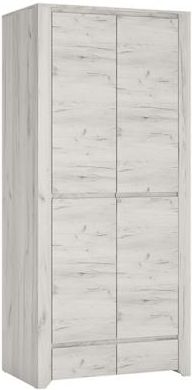 Szafa ubraniowa z kolekcji mebli Angel oferuje użytkownikowi wnęki do przechowywania ubrań wiszących i poukładanych, a także dwie praktyczne szuflady na bieliznę lub akcesoria. Mebel wyróżnia się prostą, minimalistyczną bryłą i neutralnym wybarwieniem. Stanowi więc praktyczny wybór na lata, dopasowujący się do zmiennych trendów aranżacyjnych. Czym charakteryzuje się szafa pokojowa Angel? Szafa dwudrzwiowa z szufladami Angel, od Meble Wójcik, została wykonana z wysokiej jakości płyty laminowanej, odpornej na uszkodzenia mechaniczne i działanie wilgoci. Mebel jest łatwy w czyszczeniu i niewymagający w pielęgnacji. Dysponuje systemem bezuchwytowym, który ułatwia utrzymanie jego frontów w nienagannej czystości, a także podkreśla minimalistyczny charakter całej bryły. Szafa oferuje użytkownikowi wnękę z drążkiem na wieszaki i dużą liczbę półek do segregowania przechowywanej w środku odzieży. Ma też dwie funkcjonalne szuflady na prowadnicach rolkowych. Gdzie sprawdzi się szafa biała Angel? Prezentowana szafa dziecięca jest meblem o uniwersalnym designie i neutralnej kolorystyce. Prosta bryła sprawia, że nie przytłacza on żadnej aranżacji, a dekor Dąb White Craft, imitujący bielone drewno, idealnie współgra z różnymi barwami ścian i dodatków, pomagając w wykreowaniu spokojnej przestrzeni do nauki i zabawy. Szafa pozwala również rozświetlić i optycznie powiększyć pomieszczenie, dlatego sprawdza się nawet w bardzo małej sypialni, w której potrzebne jest praktyczne miejsce na odzież i dodatki. Wymiary szafy Szerokość: 84 cm Głębokość: 58,2 cm Wysokość: 190,5 cm Dostępny kolor Dab White Craft