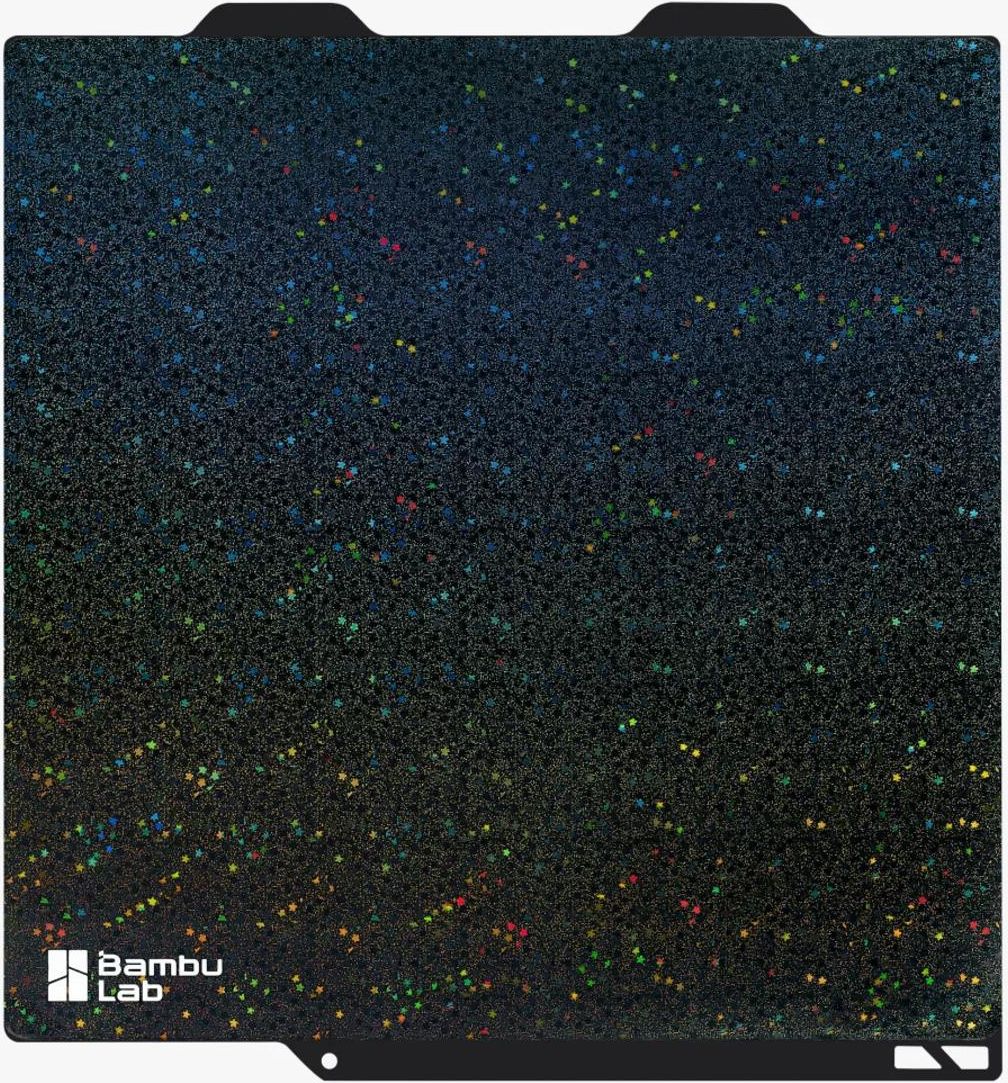 Powierzchnia galaktyki Galaxy Surface przenosi żywy, galaktyczny efekt tęczy na pierwszą warstwę wydruku, który mieni się i zmienia kolor w zależności od kąta padania światła. Najlepiej sprawdza się na jedwabnych lub błyszczących filamentach, aby w pełni wykorzystać efekt przenoszenia wzoru. Notatka Podczas korzystania z płyty z efektem Bambu 3D należy ustawić typ płyty na Gładka płyta PEI/Płyta wysokotemperaturowa i dokładnie przestrzegać zalecanych ustawień stołu grzewczego. Wzory 3D wymagają czystej powierzchni, aby pozostały widoczne. Tłuszcz może spowodować zanik wzorów. Należy bezwzględnie dbać o czystość powierzchni. Zalecamy czyszczenie gorącą wodą z detergentem i unikanie dotykania powierzchni. Rozważania Z powodu odbić, kalibracja LIDAR-u nie będzie działać zgodnie z oczekiwaniami podczas korzystania z arkuszy efektów. Zalecamy pominięcie sekwencji kalibracji LIDAR-u lub kalibrację za pomocą zwykłej płytki. Zapasowe arkusze z efektem 3D są materiałami eksploatacyjnymi. Aby przedłużyć żywotność tekstur transferowych, spróbuj umieścić obiekty do druku w różnych miejscach arkusza. Nie nakładać kleju na powierzchnię arkusza. Podczas usuwania nadruków za pomocą skrobaka należy zachować szczególną ostrożność, aby nie uszkodzić powierzchni arkusza. Zalecane ustawienia Do druku zalecamy użycie filamentu PLA i TPU. Należy pamiętać, że inne ustawienia slicera mogą wymagać dostosowania w zależności od drukowanego modelu i wymagań dotyczących filamentu. W Bambu Studio wybierz opcję „Płytka gładka PEI/Płytka wysokotemperaturowa”.