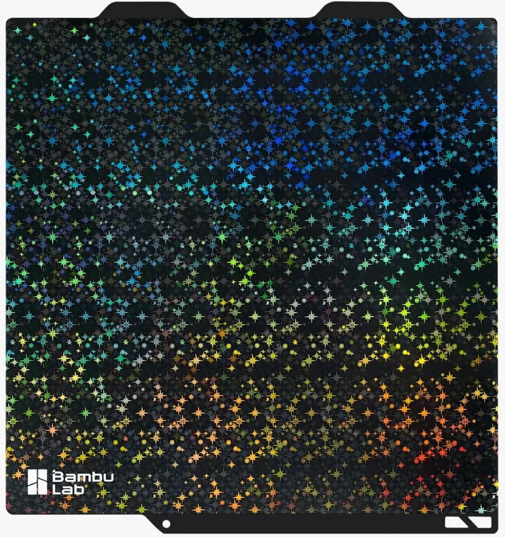 Gwiaździsta powierzchnia Powierzchnia Starry Surface przenosi tęczowy, kalejdoskopowy efekt gwieździstego nieba na pierwszą warstwę wydruku, który mieni się i zmienia kolor w zależności od kąta padania światła. Najlepiej sprawdza się na jedwabnych lub błyszczących filamentach, aby w pełni wykorzystać efekt przenoszenia wzoru. Notatka Podczas korzystania z płyty z efektem Bambu 3D należy ustawić typ płyty na Gładka płyta PEI/Płyta wysokotemperaturowa i dokładnie przestrzegać zalecanych ustawień stołu grzewczego. Wzory 3D wymagają czystej powierzchni, aby pozostały widoczne. Tłuszcz może spowodować zanik wzorów. Należy bezwzględnie dbać o czystość powierzchni. Zalecamy czyszczenie gorącą wodą z detergentem i unikanie dotykania powierzchni. Rozważania Z powodu odbić, kalibracja LIDAR-u nie będzie działać zgodnie z oczekiwaniami podczas korzystania z arkuszy efektów. Zalecamy pominięcie sekwencji kalibracji LIDAR-u lub kalibrację za pomocą zwykłej płytki. Zapasowe arkusze z efektem 3D są materiałami eksploatacyjnymi. Aby przedłużyć żywotność tekstur transferowych, spróbuj umieścić obiekty do druku w różnych miejscach arkusza. Nie nakładać kleju na powierzchnię arkusza. Podczas usuwania nadruków za pomocą skrobaka należy zachować szczególną ostrożność, aby nie uszkodzić powierzchni arkusza. Zalecane ustawienia Do druku zalecamy użycie filamentu PLA i TPU. Należy pamiętać, że inne ustawienia slicera mogą wymagać dostosowania w zależności od drukowanego modelu i wymagań dotyczących filamentu. W Bambu Studio wybierz opcję „Płytka gładka PEI/Płytka wysokotemperaturowa”.