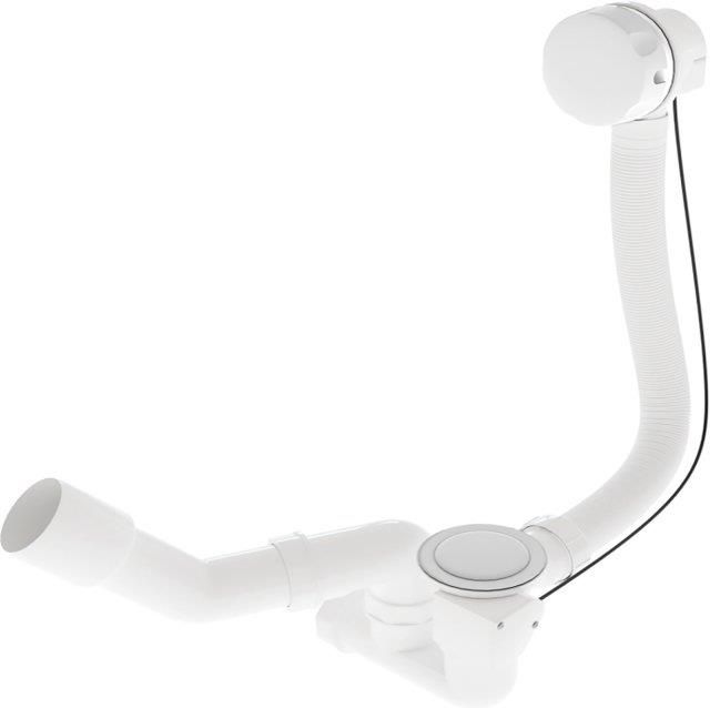 Syfon automatyczny z przelewem Typ syfonu: wannowy przelewowo-odpływowy Materiał: polipylen Wykończenie: biały metalowy korek i sitko elastyczny wąż przelewowy automatyczny korek kolano montażowe 40-50 Długość: 53,5 cm W zestawie: syfon, sitko, korek, automatyczny mechanizm, uszczelki Marka: Besco …