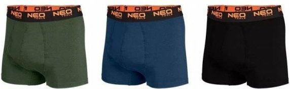 Bokserki basic, 3-pack od marki NEO TOOLS to wygodne bokserki męskie, które charakteryzują się oryginalnym projektem własnym. Wykonane z wysokiej jakości dzianiny single jersey 95% bawełny i 5% elastanu. Dzięki temu doborowi materiałów gwarantują one wyjątkowy komfort noszenia. Posiadają gramaturę 180g/m2. To bielizna przyjemna w noszeniu. Dostępna w trzech wersjach kolorystycznych: gładkim, czarnym, gładkim, zielonym, gładkim, granatowym.Zastosowanie codzienna bielizna męska do użytku osobistego, idealna dla mężczyzn pracujących fizycznie lub w magazynach, zapewniająca komfort i trwałość, przyjemna, wygodna bielizna na co dzień, prezent dla mężczyzny, wpisujący się w jego zainteresowania.Cechy produktu bokserki męskie basic, 3-pack, unikalny projekt własny, gładkie, trzy wersje kolorystyczne, miękka żakardowa guma z pomarańczowym logiem, płaskie szwy przedniego panelu, dodatkowy panel w kroku, brak szwów bocznych, gładko wykończone nogawki, certyfikat CE.Materiał single jersey 95% bawełna, 5% elastan, gramatura: 180 g/m2.**...